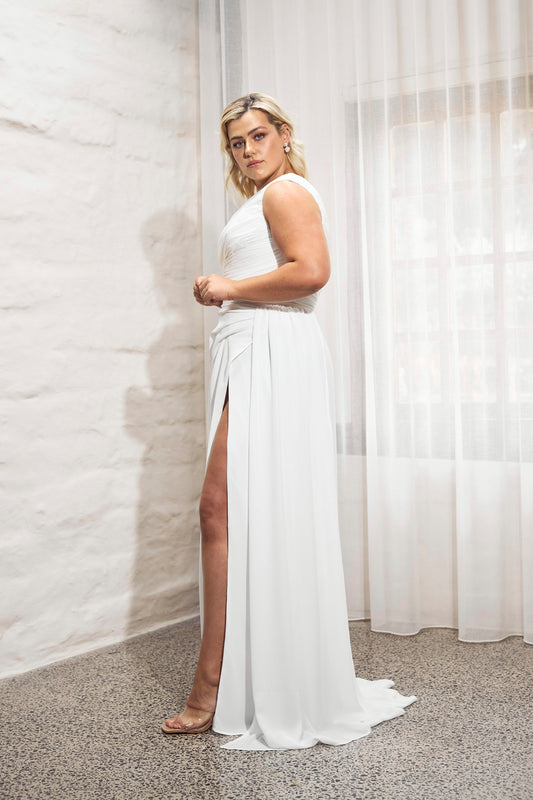 Alexandra Boktor was born when the founder, Alexandra, noted that luxury formal wear, specifically formal wear targeted toward brides and bridesmaids, was only available to certain individuals. Specifically, women with bodies that fit the stereotypical ‘standard sizes’. Trying on such luxury wear was almost impossible for the ‘curvy woman’, as in-store stock was always very limited. It seemed if you were more shapely, your options were limited to fast fashion online brands; where quality, sustainability and ethics were not always prioritised. At Alexandra Boktor, we feel every diverse body should be celebrated, and everyone should have the right to access high quality luxury wear that’s designed and ethically made in Melbourne. With a range of sizes available, and fittings at our Melbourne based manufacturer, we strive to create a wonderful experience for all of our clientele.